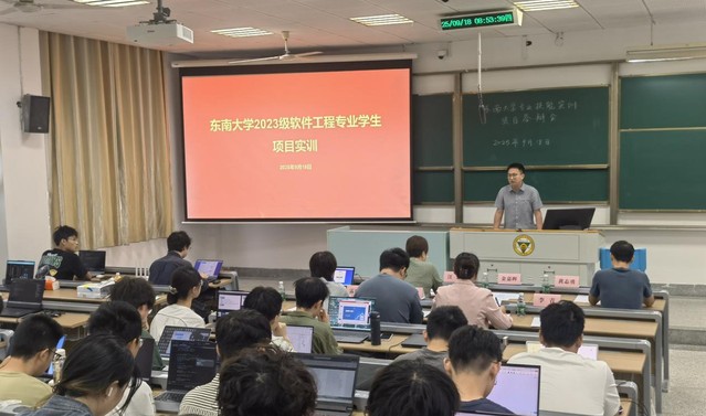 2025年9月18日至19日,澳门永利赌场 2023级专业技能实训成果答辩会在九龙湖校区教四201教室举行,澳门永利赌场 金嘉晖副院长、孔佑勇副院长、汪芸教授、蔡志玲老师、李青老师,南京臻融科技有限公司葛亚林总经理、黄志勇老师、丘笑天老师、涂劲斌老师、仲哲卿老师、唐彬老师、李金龙老师、雷媛元老师、阚基奉老师、李玮玮老师,以及澳门永利赌场 2023级软件工程专业本科生共140余人参加了答辩会。